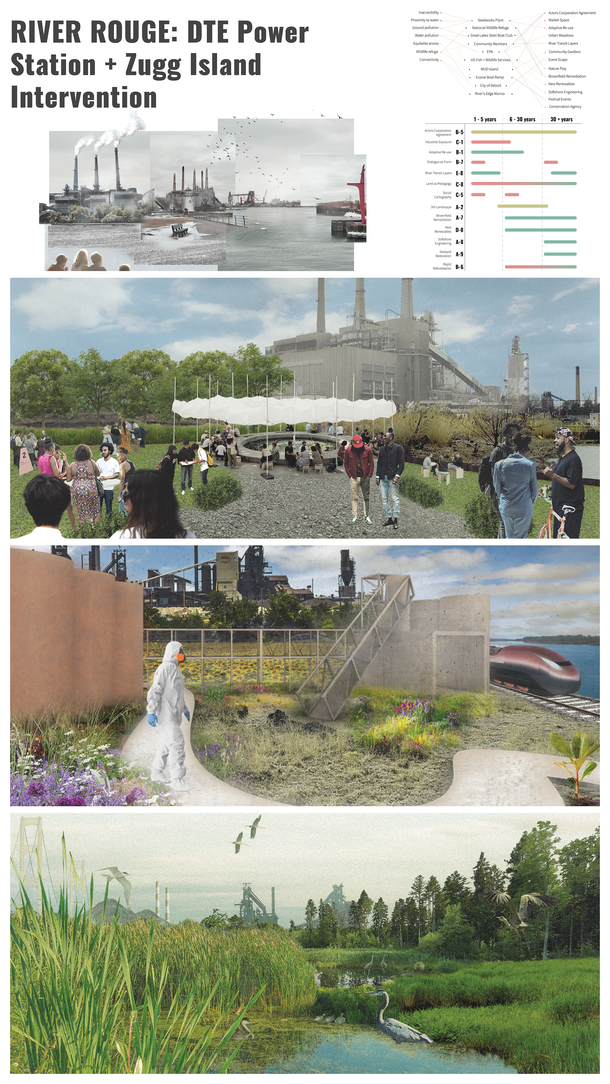 …aims to provide an in-depth look at current conditions along the Detroit River, understanding industrialized sites, who the actors are, & what issues to address. The guidebook provides a catalog of tactics and interventions that can be implemented on a variety of scales in affected communities along the riverfront, through bottom up and top down approaches. It is through these processes that actors can explore methods of generating collective empowerment, subversion, and viable disruptions that allow them to enter negotiations over the environments they inhabit.