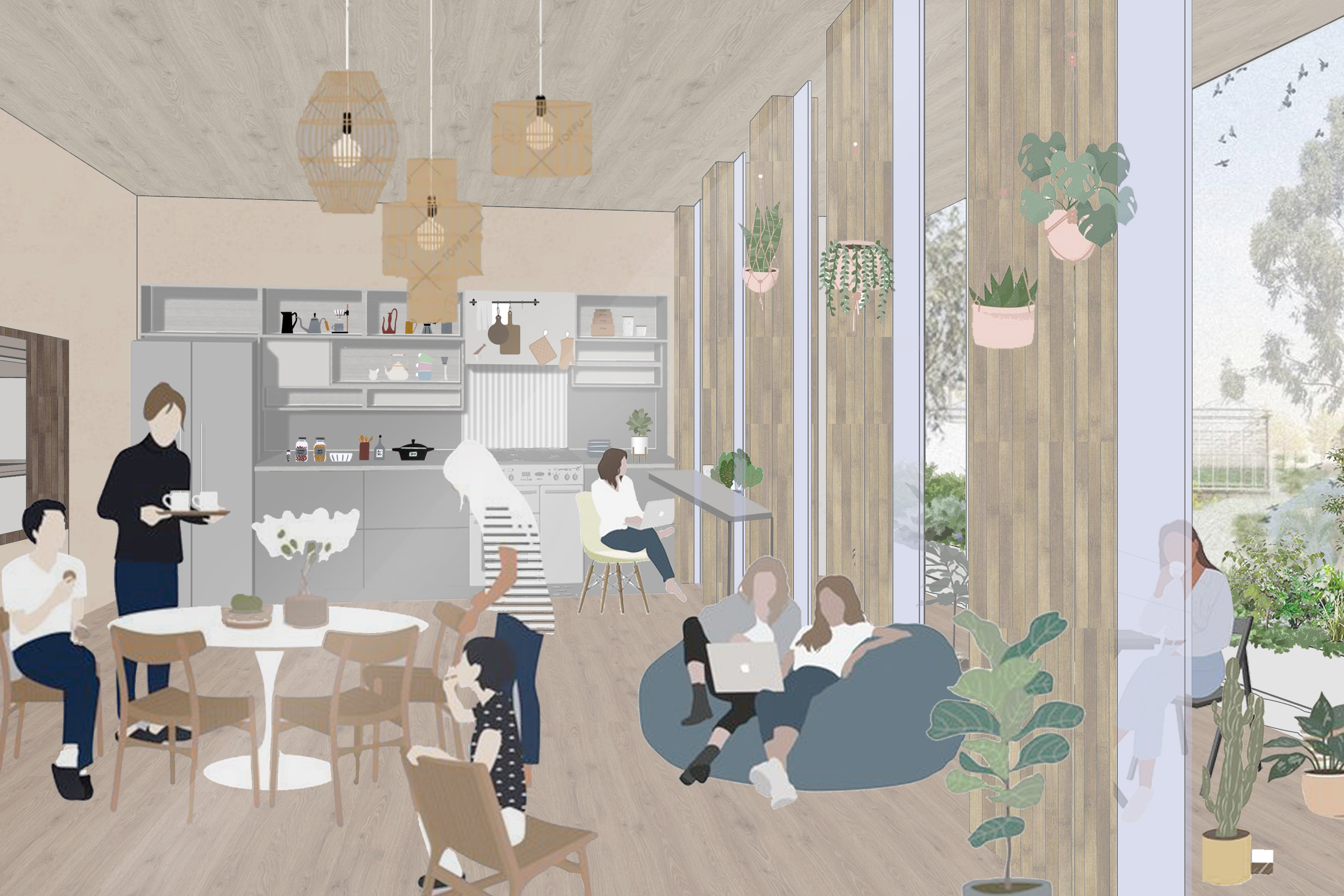 With the current natural conditions and research from native residents in Jefferson Charles in Detroit, we proposed E-CO-LIVING, which represents ECOnomical, ECOlogy, ECOsystem, and ECOnomic, COherent, COmmunity, COllective, COntent, COoperative, and COhesive.