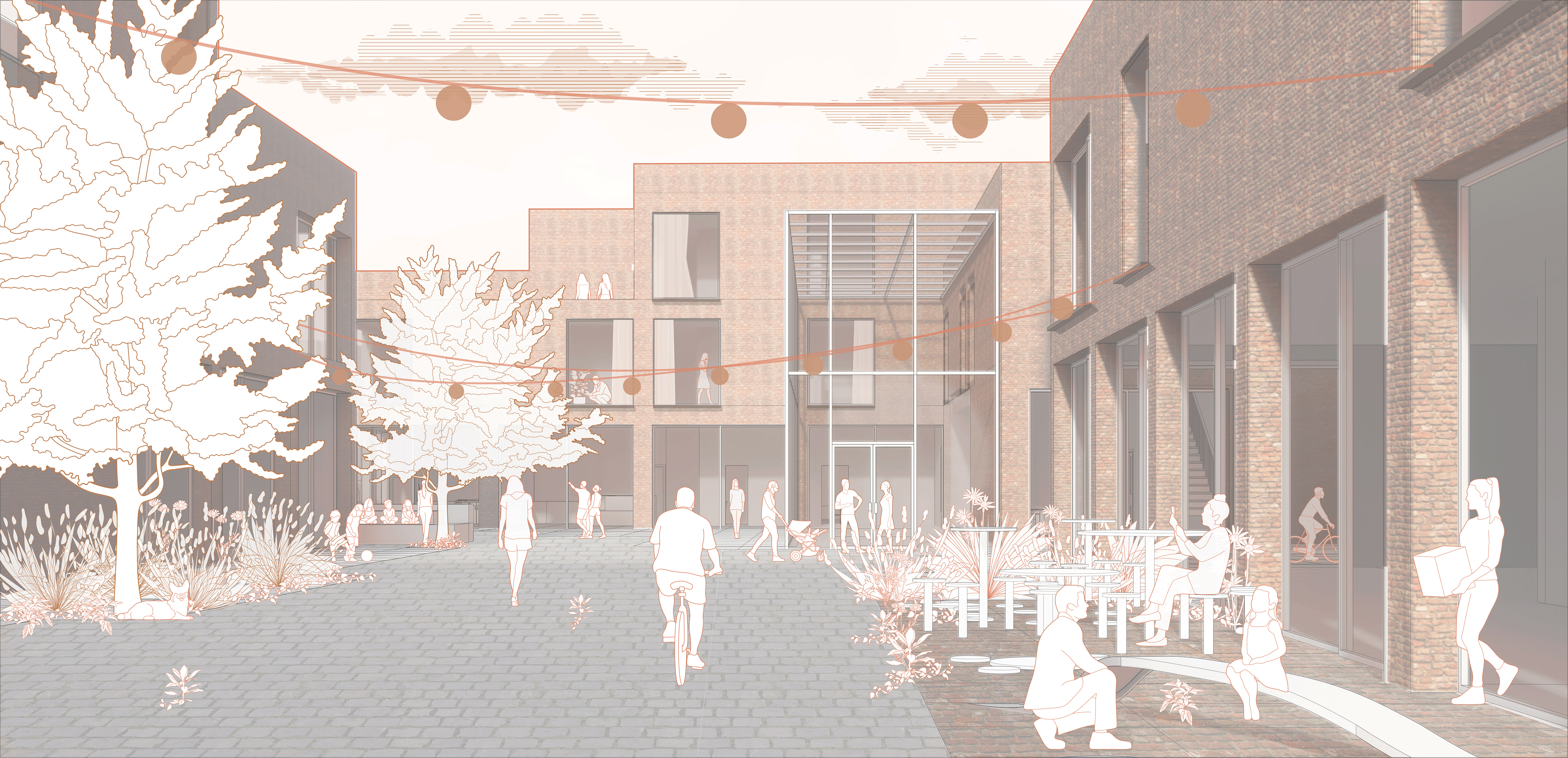 Co-Op/CO-HO is a multi-generational housing alternative designed for community engagement, long-term residency, and sustainable development through the combination of generous public spaces, pollinator-forward landscapes, and local reclaimed materials. Together these ingredients foster a warm live-in-ready environment that stands in contrast to contemporary development. To promote a sense of flexibility and co-operative growth, the framework of a module CLT system was selected as the structural language for the design. This system allows for modules to be developed, bought, and/or combined in order to accommodate evolving lifestyles.