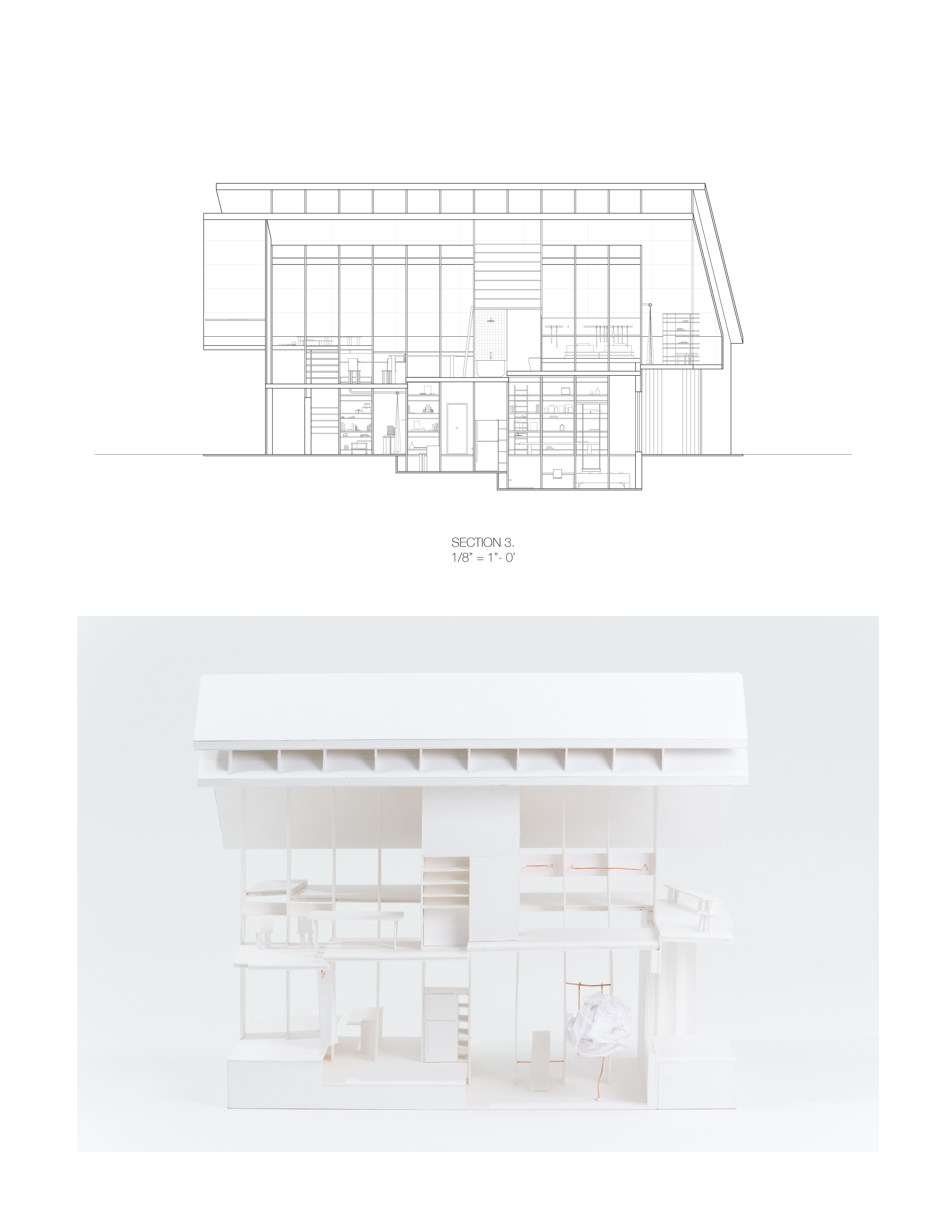 This house is interested in the pulling and pushing of floors, walls, and beams that result in a shift of the scales. Firstly, dividing the first floor into three spaces and stepping up the second floor around central beams results in a division of scale and space. Secondly, the central beams of the house are arranged in a linear manner that opens up the space and also creates new opportunities for movement, vision, and use. These design strategies are particularly suited to the needs of two young siblings, providing them with a playful and engaging environment. As the floors step up closer to the roof, the space becomes more intimately scaled to the needs of the children, promoting a sense of comfort and familiarity.